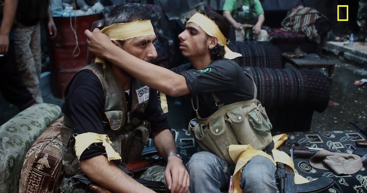 That’s one gripping scene among many in Hell on Earth: The Fall of Syria and the Rise of ISIS, a National Geographic documentary premiering June 11. The film by Sebastian Junger and Nick Quested, the Emmy Award-winning pair behind Restrepo (2010) and Which Way Is the Front Line from Here? (2013), traces how the bloody crackdown on youth dissent in March 2011 metastasized into the intractable conflict that today has left an estimated 500,000 dead and millions uprooted.