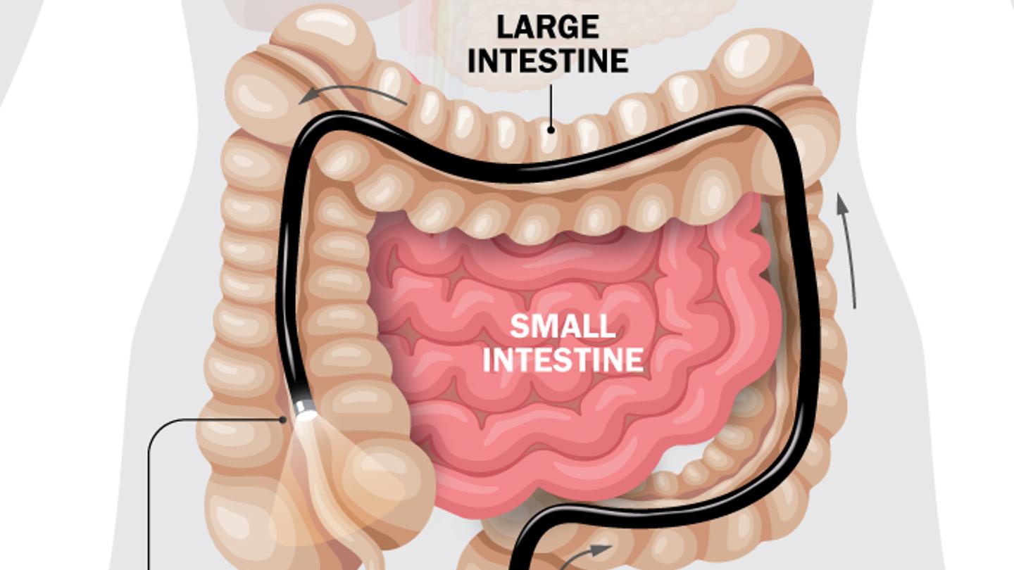 For most colonoscopies, this is enough time. In a healthy person, a probe called a colonoscope will be inserted five to six feet into the large intestine. If you have a history of inflammatory bowel disease (IBD), like Crohn’s disease, the doctor may want to probe further, into the small intestine. This may also be the case if you have a family history of colon cancer or a personal history of polyps, Salama explains.